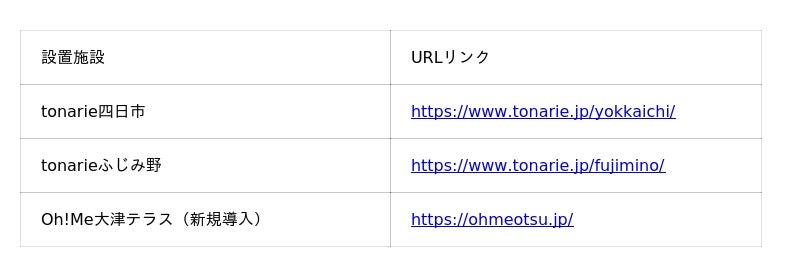 導入済の「tonarie四日市」「tonarieふじみ野」に加え、新たに「Oh!Me 大津テラス」(滋賀県大津市)へ設置しました。