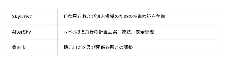 本プロジェクトは、豊田市の多大なる協力と、SkyDriveとの緊密な連携によって実現しました。