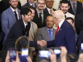 米国では主要スポーツで優勝したチームによる大統領の表敬訪問が恒例行事で、昨年は4月7日に大谷や山本がトランプ大統領とあいさつを交わした。ただ、第1次トランプ政権の際には政治姿勢に反発する選手らの欠席が相次いでいた。