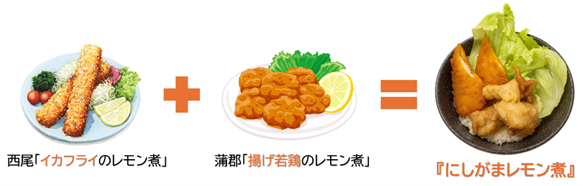 愛知県西尾市と蒲郡市の学校給食の人気ナンバー1メニュー、「イカフライのレモン煮」(西尾市)と「揚げ若鶏のレモン煮」(蒲郡市)がコラボメニュー「にしがまレモン煮」となって両市の飲食店で販売されます!