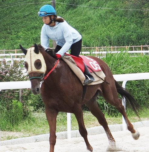 レース本番に向けて攻め馬に励む深沢杏花騎手