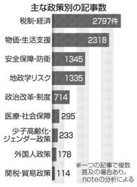 衆院選2026 「税制・経済」の投稿最多 消費減税や円安、注目集まる note、政策別に分類 2026年2月7日 05:00 国内最大級の投稿サイト「note... 残り513文字(全文:530文字) この記事をお読みいただくには「デジタルプラン」または「宅配+デジタルプラン」の会員登録が必要です。無料会員の方はログインしてマイページからコース変更してください。デジタルプランまたは宅配+デジタルプランをご登録中の方はログインしてください。 岐阜新聞デジタル会員に登録すると 無料会員向け記事が読める ニュースレターで最新情報が受け取れる デジタルプラン、宅配+デジタルプランなら Webオリジナルコンテンツが読める 紙面ビューアが読める チケットの先行発売に参加できる お得なクーポンが使える 新規登録ページ ログインページ トップ 岐阜のニュース 衆院選2026 「税制・経済」の投稿最多 消費減税や円安、注目集まる note、政策別に分類 関連記事 インフルエンザ、再び警報レベル 岐阜も感染者増加 B型ウイルス拡大が要因か 濃飛バス、特急「高山・下呂温泉~馬籠・妻籠線」を4月から再開 岐阜市、マイナポータルで市民に3000円給付 物価高騰対策、上乗せも サウナの消防設備、岐阜市消防本部などが確認 東京の夫婦死亡火災受け査察 五色ケ原や上高地…北アルプス横断観光、首都圏へPR 高山市と松本市の団体が横浜市で展示 アマゴ釣り楽しんで 長良川漁協が3000匹放流 おすすめ記事 ミラノ冬季五輪開幕、岐阜県勢5選手も闘志点火「自分らしく」「良い準備できた」 JOCがコメント発表 大票田で最後の訴え 衆院選8日投開票 最激戦区の岐阜4区、各候補が可児市で街頭活動 五輪モーグル・堀島選手の応援せんべい缶を発売 大垣の田中屋せんべい総本家 社長も元フリースタイルスキー選手で縁 岐阜市、マイナポータルで市民に3000円給付 物価高騰対策、上乗せも