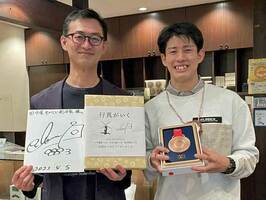 池田町出身で、ミラノ・コルティナ冬季五輪に出場するフリースタイルスキー男子モーグルの堀島行真選手(28)=トヨタ自動車=を応援しようと、田中屋せんべい総本家(大垣市本町)は特別商品「行真がいく 応援せんべい缶」を発売した。堀島選手の競技人生とモーグル競技の世界観を表現した4種類のせんべいを詰めた。...