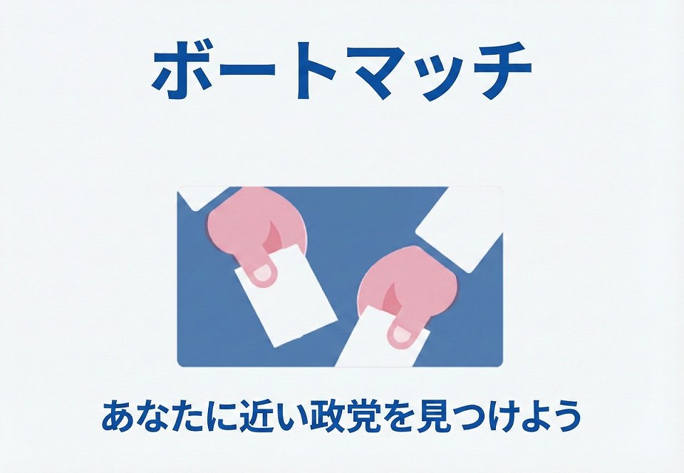 共同通信社ボートマッチ「選挙、どうする?」は、クイズ形式の質問に答えると、あなたの考えに近い政党を表示する、投票サポートツールです。選挙と政治について考える、きっかけになれば幸いです。