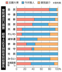 自民支持層8割加藤氏が固める 岐阜4区出口調査分析 無党派、今井氏5割以上 2026年2月9日 05:00 共同通信社は、衆院選が投開票され... 残り428文字(全文:445文字) この記事をお読みいただくには「デジタルプラン」または「宅配+デジタルプラン」の会員登録が必要です。無料会員の方はログインしてマイページからコース変更してください。デジタルプランまたは宅配+デジタルプランをご登録中の方はログインしてください。 岐阜新聞デジタル会員に登録すると 無料会員向け記事が読める ニュースレターで最新情報が受け取れる デジタルプラン、宅配+デジタルプランなら Webオリジナルコンテンツが読める 紙面ビューアが読める チケットの先行発売に参加できる お得なクーポンが使える 新規登録ページ ログインページ トップ 岐阜のニュース 自民支持層8割加藤氏が固める 岐阜4区出口調査分析 無党派、今井氏5割以上 関連記事 *有識者に聞く* 岐阜聖徳学園大准教授(経済学) 松葉敬文氏 「積極財政」繊細な綱渡り 安心な未来へ決意新た *有識者に聞く* 愛知学院大教授(政治学) 「国論を二分」議論が加速 森正氏 岐阜5区 背水の陣、古屋さん13選 岐阜2区 棚橋さん「恩返しへ努力」 岐阜3区 武藤さん「成長を地域に」 おすすめ記事 【衆院選速報】参政・伊藤恵介氏が比例復活当選 岐阜3区 【衆院選速報】野村美穂氏が比例復活当選 岐阜2区 元県議・加藤大博さん、自民の議席奪還【衆院選 岐阜4区】 【衆院選速報】岐阜4区 加藤氏が当選確実