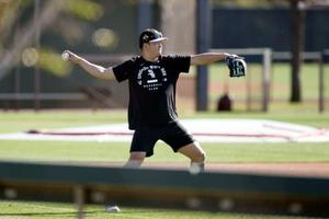 【グレンデール(米アリゾナ州)共同】プロ野球ヤクルトから米大リーグ、ホワイトソックスに移籍した村上宗隆内野手が8日、キャンプ地のアリゾナ州グレンデールの球団施設を訪れ、自主練習で軽快に体を動かした。同球団のマイナーに所属する西田陸浮内野手とともに練習。三塁の守備位置でノックを受け、打撃ケージで打ち込んだ。