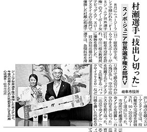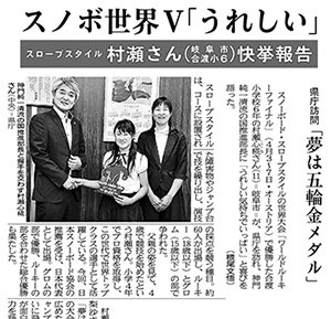 【2016年5月27日掲載】スノボ世界V「うれしい」 スロープスタイル・村瀬さん(岐阜市合渡小6)快挙報告 県庁訪問「夢は五輪金メダル」