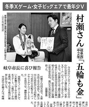 【2018年5月30日掲載】村瀬さん(岐阜西中2年)「五輪も金」 冬季Xゲーム・女子ビッグエアで最年少V