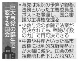 表層深層 巨大与党 国会一変 重要ポスト奪還、18日召集 監視機能低下の懸念 2026年2月11日 05:00 会談に臨む自民党の梶山国対委員長(中央左)と中道改革連合の笠共同国対委員長(同右)ら=10日午後、国会 衆院選の自民党圧勝による「巨大与... 残り1301文字(全文:1318文字) この記事をお読みいただくには「デジタルプラン」または「宅配+デジタルプラン」の会員登録が必要です。無料会員の方はログインしてマイページからコース変更してください。デジタルプランまたは宅配+デジタルプランをご登録中の方はログインしてください。 岐阜新聞デジタル会員に登録すると 無料会員向け記事が読める ニュースレターで最新情報が受け取れる デジタルプラン、宅配+デジタルプランなら Webオリジナルコンテンツが読める 紙面ビューアが読める チケットの先行発売に参加できる お得なクーポンが使える 新規登録ページ ログインページ トップ 岐阜のニュース 表層深層 巨大与党 国会一変 重要ポスト奪還、18日召集 監視機能低下の懸念 関連記事 渡辺富加町長、岐阜県議補選加茂郡選挙区に出馬へ ★森木、パ軍とマイナー契約 サッカー 広島決勝T進出 ACLE1次L 大リーグ ドジャーストリオが調整 ベイ、東が開幕投手 NBA 八村12得点 チームは敗れる おすすめ記事 春を先取り 岐阜市・梅林公園で幻想的ライトアップ 岐阜市の寺院で「福だるま供養」 安全や幸せ願う 村瀬心椛選手「お父さんが私のお父さんでよかった」感謝の言葉、何度も 壁乗り越えた家族の支え 瑞浪市の集合住宅で3人の遺体発見、室内に練炭