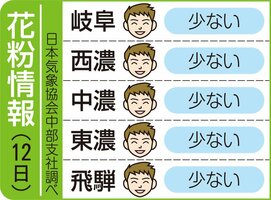 県内の花粉情報 2026年2月12日 10:00 岐阜県内の花粉飛散度は、5圏域とも... 残り22文字(全文:39文字) この記事をお読みいただくには「デジタルプラン」または「宅配+デジタルプラン」の会員登録が必要です。無料会員の方はログインしてマイページからコース変更してください。デジタルプランまたは宅配+デジタルプランをご登録中の方はログインしてください。 岐阜新聞デジタル会員に登録すると 無料会員向け記事が読める ニュースレターで最新情報が受け取れる デジタルプラン、宅配+デジタルプランなら Webオリジナルコンテンツが読める 紙面ビューアが読める チケットの先行発売に参加できる お得なクーポンが使える 新規登録ページ ログインページ トップ 岐阜のニュース 県内の花粉情報 関連記事 新人警察官10キロ競走 岐阜県警、長良川沿いで恒例行事 優勝は箱根駅伝で山上り走った元選手 堀島、悲願の金メダルに挑む 男子モーグル、きょう12日夜に決勝 春を先取り 岐阜市・梅林公園で幻想的ライトアップ 岐阜市の寺院で「福だるま供養」 安全や幸せ願う 瑞浪市の集合住宅で3人の遺体発見、室内に練炭 村瀬心椛選手、高難度化けん引「努力怠らない天才肌」 プロの視点・国武大晃さん おすすめ記事 「これでも甲子園に行けないか」 決勝・県岐阜商戦、脳裏から離れぬ被弾の音 田口聖記さん 【ぎふ高校野球 名将流儀】 新人警察官10キロ競走 岐阜県警、長良川沿いで恒例行事 優勝は箱根駅伝で山上り走った元選手 堀島、悲願の金メダルに挑む 男子モーグル、きょう12日夜に決勝 記者が振り返る岐阜県内の選挙戦 まさに“高市1強” 【ぎふ衆院選2026】