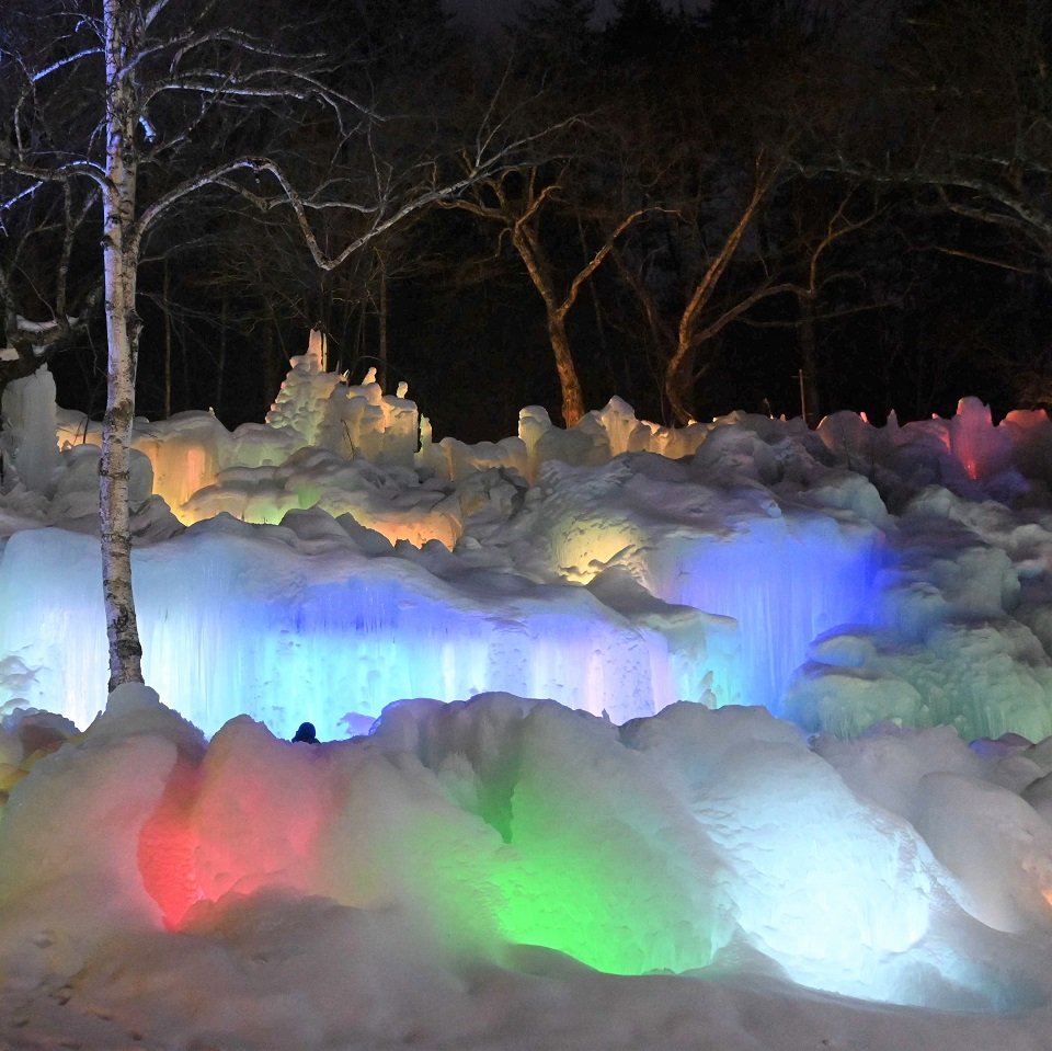 氷点下の森は真冬の寒さを生かし、約4ヘクタールある敷地内に造られる。日中は青く見える透明感のある氷を、夜はライトアップされた幻・・・つづきはこちら