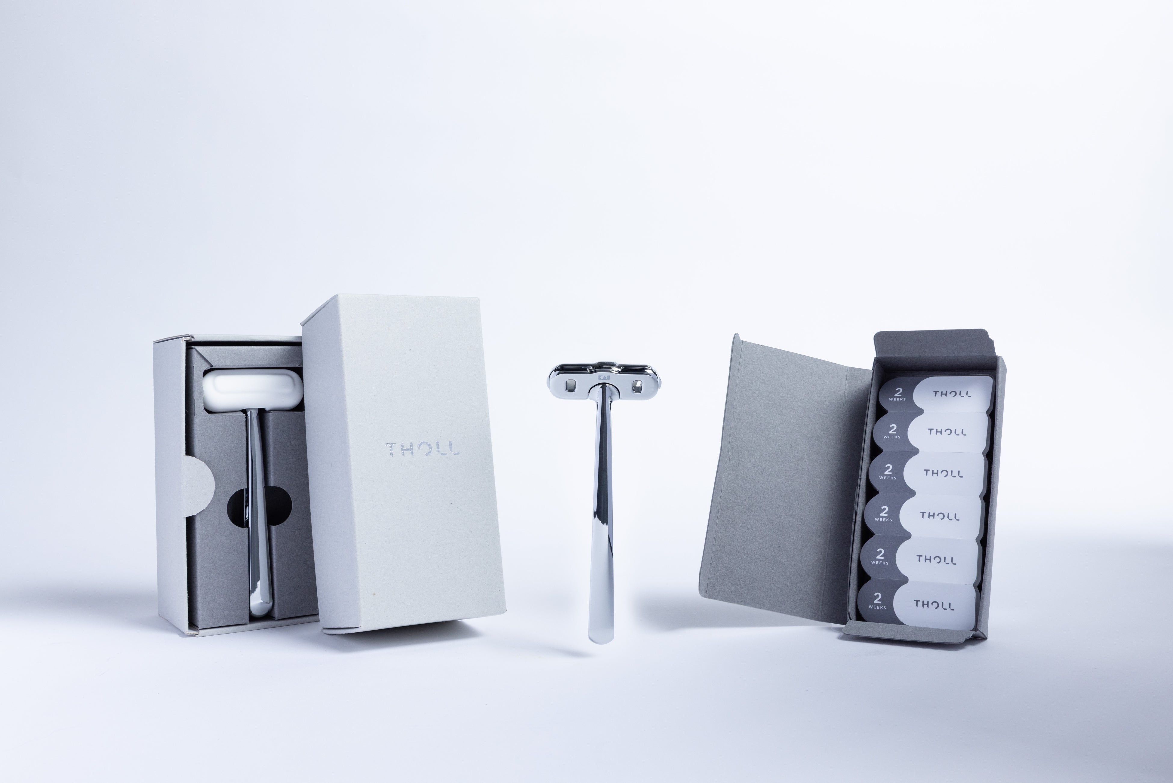 今回登場する「THOLL」は、2021年に発売した、紙カミソリ(R)に次ぐ新しい環境対応のカミソリを作るという目的のもと、開発がスタートしました。100%プラスチックフリーかつ耐久性に優れたフルメタルなカミソリで、替刃交換式のため、半永久的にお使いいただけます。サステナビリティとエコノミーを両立しながら、通常のカミソリと同等の使い心地を実現したカミソリです。