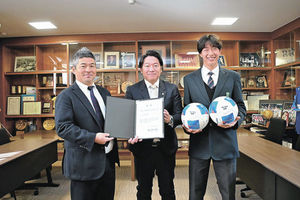 中京高サッカー部 庭萬が20万円寄付 大垣共立銀の私募債活用 教育 2026年2月14日 05:00 前田浩太郎社長(中央)から目録を受け取った平中亮太校長(左)と邑樂渉さん=瑞浪市土岐町、中京高校 可児市羽崎の造園業「庭萬」と大垣... 残り284文字(全文:301文字) この記事をお読みいただくには「デジタルプラン」または「宅配+デジタルプラン」の会員登録が必要です。無料会員の方はログインしてマイページからコース変更してください。デジタルプランまたは宅配+デジタルプランをご登録中の方はログインしてください。 岐阜新聞デジタル会員に登録すると 無料会員向け記事が読める ニュースレターで最新情報が受け取れる デジタルプラン、宅配+デジタルプランなら Webオリジナルコンテンツが読める 紙面ビューアが読める チケットの先行発売に参加できる お得なクーポンが使える 新規登録ページ ログインページ トップ 岐阜のニュース 教育 中京高サッカー部 庭萬が20万円寄付 大垣共立銀の私募債活用 関連記事 FC岐阜15日ホーム開幕戦で磐田に挑む 2試合連続の「下剋上」なるか 長良など4強 県高校新人サッカー FC各務原F優勝 サッカーGFA 県U-14新人大会 FC岐阜、敵地で快勝スタート J2・J3百年構想リーグ 県高校新人大会 男子、県岐阜商連覇 バレー 女子は済美が制す FC岐阜、地力をつける勝負の4カ月 「百年構想リーグ」8日に開幕戦 おすすめ記事 村瀬心椛/堀島行真/松浦透磨 同じ母校・岐阜第一高から五輪へ、恩師から見た共通項は? 「青氷の滝」飛騨の寒さがつくる神秘的光景 高山市高根町の岸壁に出現 第76回岐阜新聞大賞、郷土発展への功績たたえる 岐阜市で贈呈式 浅野撚糸の施設「フタバスーパーゼロミル」が福島県の建築文化賞・復興賞受賞 原発事故被害、帰還する住民の働く場提供