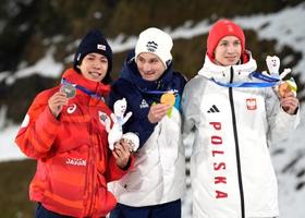 ジャンプ二階堂蓮が「銀」 船木和喜以来の1大会3メダル 2026年2月15日 05:03 男子個人ラージヒルで銀メダルを獲得し、笑顔の二階堂蓮。中央は優勝したドメン・プレブツ、右は3位のカツペル・トマシャク=プレダッツォ(共同) 【ミラノ共同】ミラノ・コルティナ冬季五輪第9日の14日、ノルディックスキー・ジャンプ男子個人ラージヒルで二階堂蓮(24)=日本ビール=が銀メダルを獲得した。今大会三つ目のメダル。ジャンプの日本勢で1大会3個は、1998年長野五輪で金2銀1の船木和喜以来、2人目。 9日の個人ノーマルヒルと10日の混合団体で銅メダルを手にし、勢いに乗る二階堂は、1回目でトップに立った。2回目に順位を落としたものの、初出場の五輪で大きな成果を上げた。 トップ 全国のニュース ジャンプ二階堂蓮が「銀」 関連記事 古賀結那、転倒で3回目を棄権 16日の天気(西日本) 16日の天気(東日本) ガザ評議会、サール外相が出席か 古賀結那は決勝進出ならず ドイツでイラン弾圧抗議デモ おすすめ記事 村瀬心椛/堀島行真/松浦透磨 同じ母校・岐阜第一高から五輪へ、恩師から見た共通項は? 「青氷の滝」飛騨の寒さがつくる神秘的光景 高山市高根町の岸壁に出現 第76回岐阜新聞大賞、郷土発展への功績たたえる 岐阜市で贈呈式 浅野撚糸の施設「フタバスーパーゼロミル」が福島県の建築文化賞・復興賞受賞 原発事故被害、帰還する住民の働く場提供