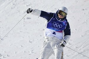 2人の選手が並んで滑りを競い、トーナメント方式で行うデュアルモーグルは今大会から正式種目となった。