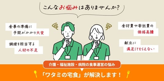 ワタミ株式会社(本社:東京都大田区、代表取締役会長 兼 社長CEO:渡邉美樹、以下「ワタミ」)が運営する食事宅配サービス「ワタミの宅食」では、福祉施設・病院、企業・学校などの法人向けに、完全調理済みのお弁当やパック惣菜を提供しています。施設運営における食事面の課題解決を支援するサービスとして、導入提案を強化し、契約施設の拡大を図ってまいります。