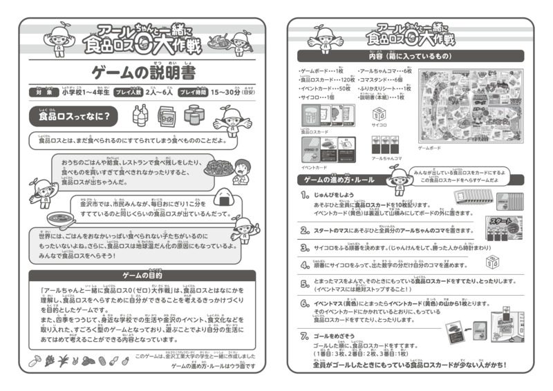 金沢工業大学は、2年次必修科目「プロジェクトデザインII」において、 2024年度に金沢市より提供されたテーマ「食品ロスを減らすために~食べ物の“もったいない”をなくしましょう」に学生チームが取り組み、提案した「食品ロス削減すごろく」がこのたび金沢市に採用され、完成しました。