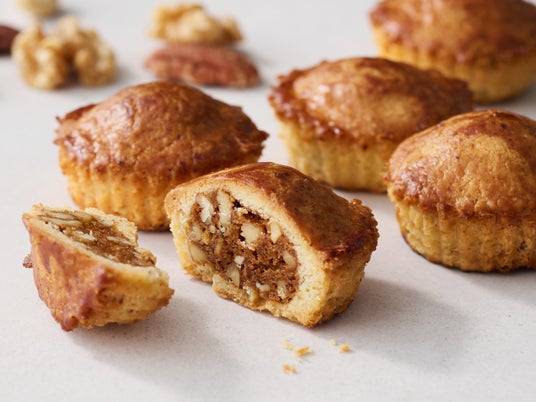 厚みのあるガレットの中に、クルミ、ピーカンナッツ、カシューナッツの3種のナッツをバランス良く合わせた奥深い味わいのキャラメルナッツを包みました。北海道産小麦粉とバターを使用したガレット生地は、ヘーゼルナッツパウダーを加え、風味豊かでほろっとした食感に。【商品名】ガレット キャラメルノワ
