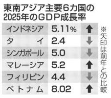 東南ア3ヵ国、成長加速 25年GDP、内需堅調 2026年2月17日 05:00 【シンガポール共同】東南アジア主... 残り574文字(全文:591文字) この記事をお読みいただくには「デジタルプラン」または「宅配+デジタルプラン」の会員登録が必要です。無料会員の方はログインしてマイページからコース変更してください。デジタルプランまたは宅配+デジタルプランをご登録中の方はログインしてください。 岐阜新聞デジタル会員に登録すると 無料会員向け記事が読める ニュースレターで最新情報が受け取れる デジタルプラン、宅配+デジタルプランなら Webオリジナルコンテンツが読める 紙面ビューアが読める チケットの先行発売に参加できる お得なクーポンが使える 新規登録ページ ログインページ トップ 岐阜のニュース 東南ア3ヵ国、成長加速 25年GDP、内需堅調 関連記事 油検出、殺人・放火で捜査 東広島住宅火災 男性は失血死 名駅死傷事故で72歳男を鑑定へ 弁護側「認知症の疑い」 静岡工場襲撃 鑑定留置開始 5月まで スカウトトップ再逮捕 女性紹介疑い 性風俗運営者らも 訃報 沢井一恵さん 結成7季目「豆腐」と「恐竜」 三浦がメンタル、木原は体格強化 おすすめ記事 大垣市で個性豊かなコーヒー飲み比べを 2月28日と3月1日、国内外の14店舗が出店 村瀬心椛の女子スロープスタイル決勝は延期 2冠目指し出場予定【ミラノ冬季五輪】 岐阜県公立高校入試 出願者数確定(一覧表掲載 2月17日正午締め切り) 春の甲子園、大垣日大に選抜旗授与 2年連続出場、山崎主将「優勝目指す」