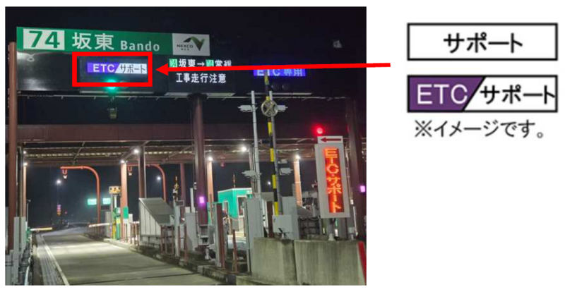 設備点検等によるETCレーン閉鎖時は、ETC車もサポートレーンをご利用ください。