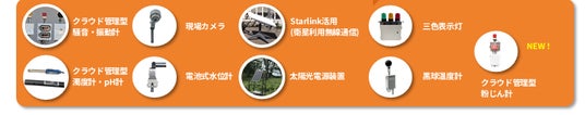 オプションも豊富に取り揃えており、水位や騒音・振動 濁度・pH 粉じんなど様々な要素を一元管理できます。