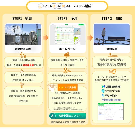 ~AI風速予測(最大72時間先)と気象観測×環境データをクラウド管理 警報装置とビジネスチャットによる自動報知で、現場の判断と共有を“人×AI”で支援~
