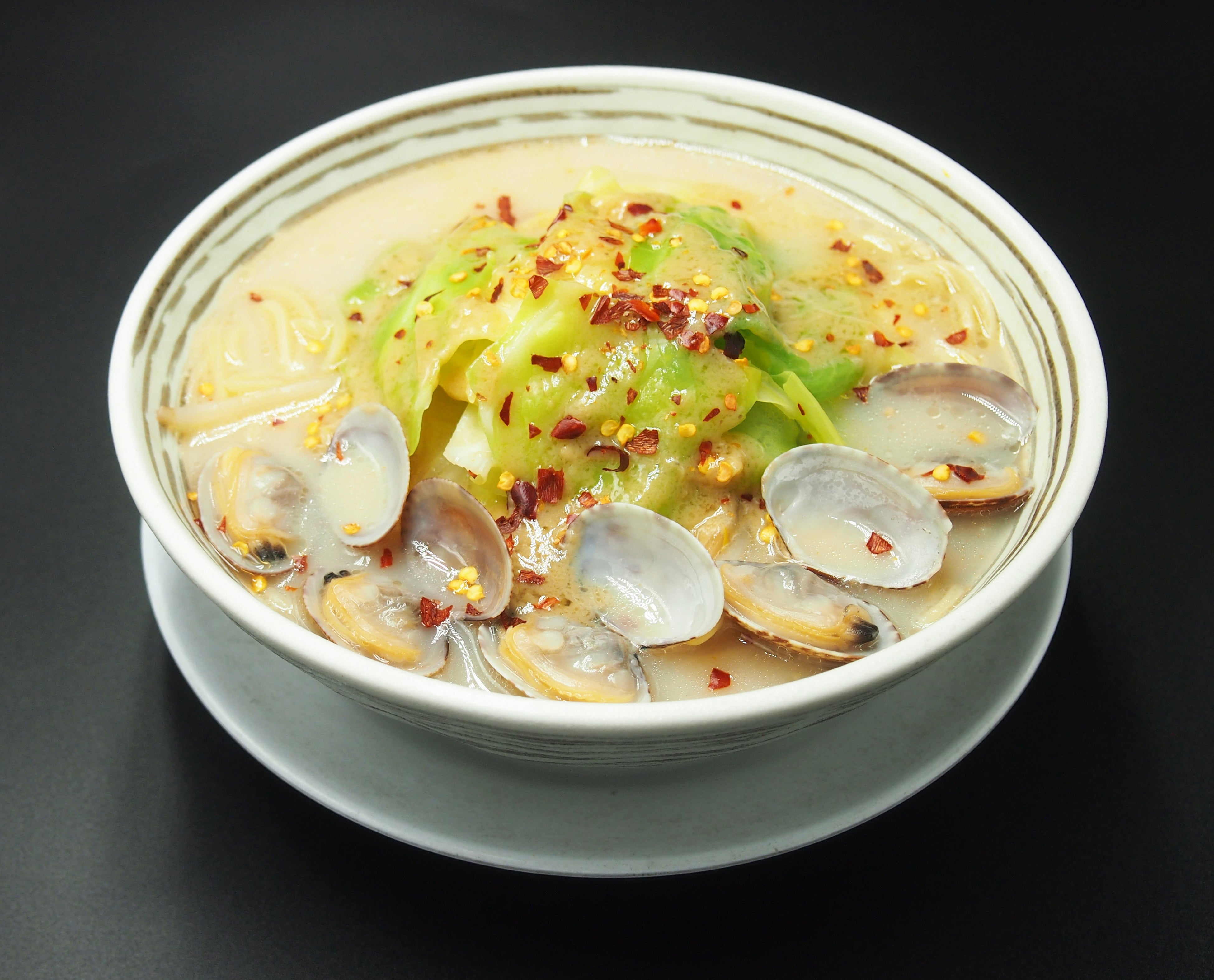 2026年春限定創作ラーメン【アンチョビキャベツのボンゴレ塩ラーメン】は、クリーミーなアンチョビソースで味付けした旬のキャベツをたっぷりと使用し、アサリの旨味の塩スープと合わせました。唐辛子のアクセントともにキャベツやアサリの旨味をお楽しみいただける一杯です。