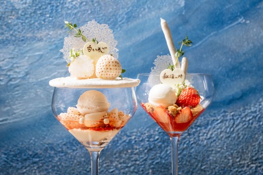 赤苺と白苺、それぞれの個性を活かした2種のパフェ