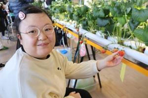 福岡市立南福岡特別支援学校の生徒が18日、校舎内で育てたイチゴを収穫した。障害のある人が農業で活躍する「農福連携」を進める狙いで、民間企業が開発中の自動水やり機能が付いた栽培キットを活用。生徒は収穫したばかりの赤く色づいた実をほおばり「おいしい」と笑顔を見せた。