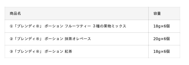 味の素AGF株式会社(代表取締役社長:島本 憲仁 以下、味の素AGF)は、《「ブレンディ(R)」 ポーション》シリーズから、〈フルーツティー 3種の果物ミックス〉と〈抹茶オレベース〉を2026年3月2日(月)より全国で新発売し、〈紅茶〉をリニューアルして、2026年2月下旬より全国で発売します。