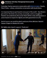質疑を終えた後、ゼレンスキー氏が「(高市早苗首相に)どうかよろしく」と話す場面も見られた。会見は首都キーウ中心部の大統領府で約50分間にわたり実施された。