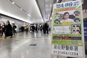 行方不明となって長期間が経過する中、事件を周知し、新たな情報を集めるのが狙い。府内の約90カ所で各署員ら約680人が活動。大阪市北区のJR大阪駅では、署員が「少しの情報でもお寄せください」と行き交う人々に声をかけた。
