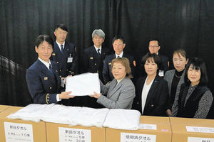 災害、救急用にタオル寄贈 中津川法人会女性部会 2消防に計842枚 2026年2月21日 05:00 タオルを持ち寄り、寄贈した中津川法人会女性部会のメンバーら=中津川市かやの木町、市消防本部 災害救助や救急の現場で活用しても... 残り365文字(全文:382文字) この記事をお読みいただくには「デジタルプラン」または「宅配+デジタルプラン」の会員登録が必要です。無料会員の方はログインしてマイページからコース変更してください。デジタルプランまたは宅配+デジタルプランをご登録中の方はログインしてください。 岐阜新聞デジタル会員に登録すると 無料会員向け記事が読める ニュースレターで最新情報が受け取れる デジタルプラン、宅配+デジタルプランなら Webオリジナルコンテンツが読める 紙面ビューアが読める チケットの先行発売に参加できる お得なクーポンが使える 新規登録ページ ログインページ トップ 岐阜のニュース 災害、救急用にタオル寄贈 中津川法人会女性部会 2消防に計842枚 関連記事 中津川市で野生イノシシ豚熱 「中津川WILD WOOD」今年も9月開催 野外ロックフェス、昨年は豪華37組 高速バス「中央ライナー可児号」ラッピング車両導入 東濃鉄道、中津川市をアピール バー併設ゲストハウス、中津川市のサウナ施設を改装 月内にもオープン ★中津川市が5社指名停止 e―Taxで確定申告して 中津川青色申告会 おすすめ記事 大垣市の旧墨俣宿、つりびなで春と歴史感じて 「小町めぐり」開幕 落語の学生日本一、策伝大賞に柿梅亭果菜さん(岐阜市出身) 演目は? 「僕の人生を変えてくれた犬」災害救助犬じゃがいも、天国へ 福島生まれ岐阜育ち、合格まで11回挑戦 ぎふワールド・ローズガーデン、パンジーやビオラ咲き誇る