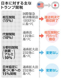 トランプ関税「違法」 米最高裁、権限認めず 2026年2月22日 05:00 【ワシントン共同=小田島勝浩、山... 残り1223文字(全文:1240文字) この記事をお読みいただくには「デジタルプラン」または「宅配+デジタルプラン」の会員登録が必要です。無料会員の方はログインしてマイページからコース変更してください。デジタルプランまたは宅配+デジタルプランをご登録中の方はログインしてください。 岐阜新聞デジタル会員に登録すると 無料会員向け記事が読める ニュースレターで最新情報が受け取れる デジタルプラン、宅配+デジタルプランなら Webオリジナルコンテンツが読める 紙面ビューアが読める チケットの先行発売に参加できる お得なクーポンが使える 新規登録ページ ログインページ トップ 岐阜のニュース トランプ関税「違法」 米最高裁、権限認めず 関連記事 話の港 住宅火災、3人死亡 千葉 女児2人と祖母か イタリア広域開催 観戦の日本人 複数の街満喫 移動時間、滞在費には苦笑い 制御基板 耐用年超過 東北新幹線連結分離トラブル 通報15分前に出火か 下関の5人死亡火災 ミラノ・コルティナ冬季五輪2026 戦い抜いた魂の言葉 村瀬心「金は違った重み」/堀島「一歩階段上がった」 “熱冬”閉幕へ おすすめ記事 FC岐阜が開幕3連勝 PK戦でいわきに勝利 岐阜市の金華山で男性が重傷 下山中に転倒、足首骨折 岐阜県、アウトドア観光強化 「健康」「癒やし」発信、国内から誘客【新年度予算案】 岐阜県の人口減、理由はジェンダー? 「国際女性デー」3月8日に岐阜市でセミナー