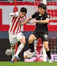 藤田譲瑠チマ、移籍後初ゴール サッカーのドイツ1部 2026年2月23日 07:56 競り合うフライブルクの鈴木唯(左)とボルシアMGの町野=フライブルク(共同) 【フライブルク(ドイツ)共同】サッカーのドイツ1部リーグで22日、ザンクトパウリの藤田譲瑠チマはホームのブレーメン戦で1―1の後半25分に移籍後初ゴールとなる決勝点を挙げた。後半42分に退き、試合は2―1で勝った。同僚の安藤智哉はフル出場。 鈴木唯人のフライブルクは高井幸大と町野修斗のボルシアMGを2―1で下した。鈴木は後半34分までプレーし、高井はフル出場、町野は後半17分から出場した。 トップ 全国のニュース 藤田譲瑠チマ、移籍後初ゴール 関連記事 米、「二段構え」攻撃検討 メキシコ麻薬組織の首領が死亡 金正恩氏を最高指導者に再任 ロシア勢、五輪閉会式で行進 松山は28位、久常45位 フィナーレの祭典、晴れやかに おすすめ記事 「さくらももこ館」郡上市に7月にもオープン GJ8マン展示やコラボグッズ販売 ホラー漫画家・伊藤潤二さん、故郷に中津川市でトーク デザインしたマンホールもお披露目 村瀬心椛選手が帰国「ものすごく成長した」 【ミラノ冬季五輪】 猫キャラ「ミャ~コさん」もふもふ交流会 大垣市の文具店がイベント