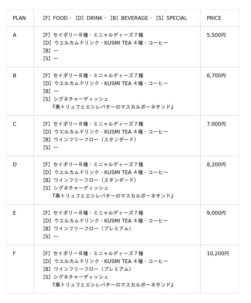 ※ 価格(PRICE)には消費税・サービス料が含まれております。