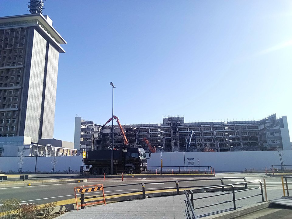 旧岐阜県庁舎(岐阜市薮田南)の解体工事が進んでいる。60年前に完成し、2023年1月まで使われた建物。骨組みはほぼなくなり、更地になろうとしている。
