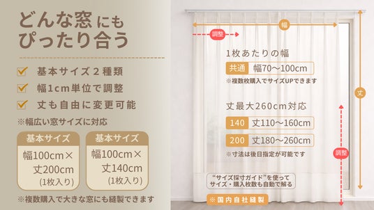 幅・丈ともに1cm単位でオーダー調整可能。
