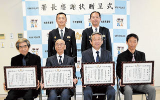 警察活動貢献たたえる 可児署 2人と7事業者に感謝状 2026年3月4日 05:00 可児署の活動を支援し、感謝状を受けた皆さん=同署 可児署は、可児駅前治安総合対策や... 残り313文字(全文:330文字) この記事をお読みいただくには「デジタルプラン」または「宅配+デジタルプラン」の会員登録が必要です。無料会員の方はログインしてマイページからコース変更してください。デジタルプランまたは宅配+デジタルプランをご登録中の方はログインしてください。 岐阜新聞デジタル会員に登録すると 無料会員向け記事が読める ニュースレターで最新情報が受け取れる デジタルプラン、宅配+デジタルプランなら Webオリジナルコンテンツが読める 紙面ビューアが読める チケットの先行発売に参加できる お得なクーポンが使える 新規登録ページ ログインページ トップ 岐阜のニュース 警察活動貢献たたえる 可児署 2人と7事業者に感謝状 関連記事 空き家犯罪防止へ協定 御嵩町と可児署が締結 市議会一般質問 地域と学校、協働推進 可児市 児童らの体験機会確保 近況 ファミリーの吉田正社長 市議会一般質問 広見線全線の利用促進 可児市、バスルート見直し 東日本大震災15年 災害忘れず祈りの音色 可児のアーラで8日慈善公演 市文化芸術振興財団 可児市のアーラ、音楽で被災地へ祈り 3月8日にコンサート おすすめ記事 旧徳山村「カメラばあちゃん」増山たづ子さん没後20年 「古里は宝」色あせぬ思い、被災地や海外で展示 FC岐阜、あす8日ホームで甲府戦 J2勢5連破へ自信 瑞穂市が「動く子ども110番!」 4月始動、関係機関と連携協定 センバツで球児にエールを! 大垣日大高で生徒ら応援練習