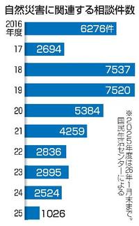 センターによると、自然災害に関する相談は2016年度からの過去10年間で、18年度の7537件が最多だった。25年度は今年1月末までで1026件。