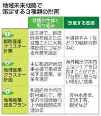 戦略産業は、高市政権が重点投資対象と位置付ける人工知能・半導体や量子、宇宙など、日本成長戦略本部で掲げた17分野を想定。企業の大規模投資を見込む。地方経済産業局を中心とした検討会で地域や分野を設定し、素案にまとめる。