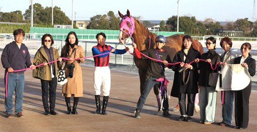 愛馬の1着ゴールを見届けた村上オーナーは「中央、岩手で善戦するも勝利には至らず。活路を求めて名古屋へ移籍も初戦逸走。その後も惜敗続きで、思い切って名手にオファー。見事に勝利を飾ってくれた」とネット上でも好騎乗をたたえた。