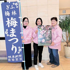 梅の名所として知られる岐阜市梅林南町の梅林公園で7、8の両日、「第73回ぎふ梅まつり」(実行委員会主催、岐阜新聞社、岐阜放送など後援)が開かれる。実行委員会のメンバーが2日、岐阜新聞本社を訪れ、来場を呼びかけた。