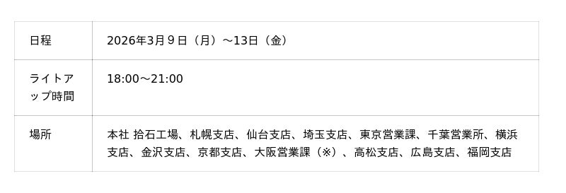 ・全国13の拠点を緑色にライトアップ