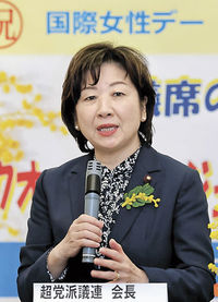 「女性の声聞く仲間増やそう」 クオータ制推進へ集会 2026年3月7日 05:00 「Qの会」の集会であいさつする超党派議連会長の野田聖子元総務相=6日午前、国会 8日の国際女性デーを前に、選挙の... 残り370文字(全文:387文字) この記事をお読みいただくには「デジタルプラン」または「宅配+デジタルプラン」の会員登録が必要です。無料会員の方はログインしてマイページからコース変更してください。デジタルプランまたは宅配+デジタルプランをご登録中の方はログインしてください。 岐阜新聞デジタル会員に登録すると 無料会員向け記事が読める ニュースレターで最新情報が受け取れる デジタルプラン、宅配+デジタルプランなら Webオリジナルコンテンツが読める 紙面ビューアが読める チケットの先行発売に参加できる お得なクーポンが使える 新規登録ページ ログインページ トップ 岐阜のニュース 「女性の声聞く仲間増やそう」 クオータ制推進へ集会 関連記事 フェンシング国内ランク1位・村瀬(岐阜総合高出)強豪の日体大へ 母と二人三脚で成長 ドイツ仕込みの自家製ハムやソーセージ販売「森本工房」初店舗、大野町にオープン 警察署で「話をさせろ」ナイフ振り回す 公務執行妨害の疑い、岐阜市の男逮捕 工場敷地に保育施設を開園 大阪シーリング印刷、大垣市に ★岡林が負傷交代 伊藤今季初○ おすすめ記事 フェンシング国内ランク1位・村瀬(岐阜総合高出)強豪の日体大へ 母と二人三脚で成長 【スコア速報】第43回岐阜オープンクラシック2026開幕 プロ・アマ頂上決戦 キャンピングカー横転、大型トラック2台衝突 瑞浪市の中央道 みこしパレードは中止 岐阜市の「道三まつり」 天候不順で一部イベント変更