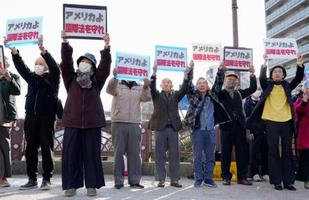 米イスラエルによるイラン攻撃に抗議する街頭集会が7日、長崎市で開かれた。長崎原爆の被爆者や市民ら計約90人が「国際法を守れ」「戦争反対」と声を上げ、攻撃の即時停止や平和的解決を求めた。
