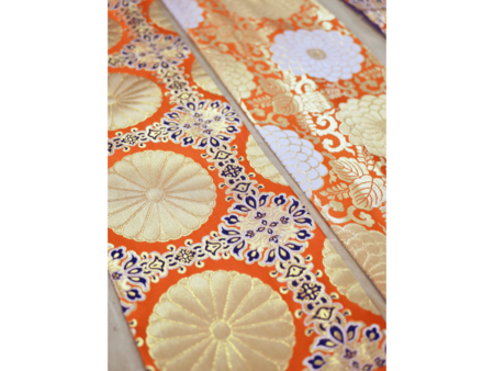 金糸や銀糸で模様を織り出している。化粧まわし(前垂れ)の裏側に縫い付けられているため、力士が化粧まわしを締めている状態では見えません。菊の刺繍、金の輝きが豪華で美しいものとなっています。
