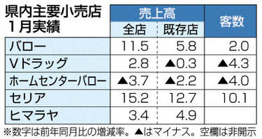 県内主要小売店1月売上高 4社が前年上回る 経済 2026年3月10日 05:00 県内に拠点を置く主要小売店5社の... 残り354文字(全文:371文字) この記事をお読みいただくには「デジタルプラン」または「宅配+デジタルプラン」の会員登録が必要です。無料会員の方はログインしてマイページからコース変更してください。デジタルプランまたは宅配+デジタルプランをご登録中の方はログインしてください。 岐阜新聞デジタル会員に登録すると 無料会員向け記事が読める ニュースレターで最新情報が受け取れる デジタルプラン、宅配+デジタルプランなら Webオリジナルコンテンツが読める 紙面ビューアが読める チケットの先行発売に参加できる お得なクーポンが使える 新規登録ページ ログインページ トップ 岐阜のニュース 経済 県内主要小売店1月売上高 4社が前年上回る 関連記事 大垣共立銀行130周年記念で特設サイト開設 夢実現プロジェクト当選者発表 岐阜県内企業も中東事業に影響 輸送ストップ、エネルギー価格上昇懸念 近況 工匠館の兼松利昌社長 大垣共立銀行、創立130周年 林頭取「次の10年へ」決意語る 地域のために、軸足守る 物価高上回る賃上げ実現を 連合岐阜が総決起集会 Z世代の特徴は?安定志向だけど…接し方学ぶ 養老町で経営セミナー おすすめ記事 【速報】可児市の大王製紙工場、男性6人救急搬送 作業中にガス吸引か あなたの町ではいくら? 岐阜42市町村の物価高支援を調査 最大3万3千円 織田家と岐阜、茶心が結ぶ 奉賛会発足へ、当主が名誉顧問/会長は伊藤英明さん 「被災ペット」世に問いかけた災害救助犬じゃがいも 岐阜市のNPO「横顔そっくり」新たな相棒も