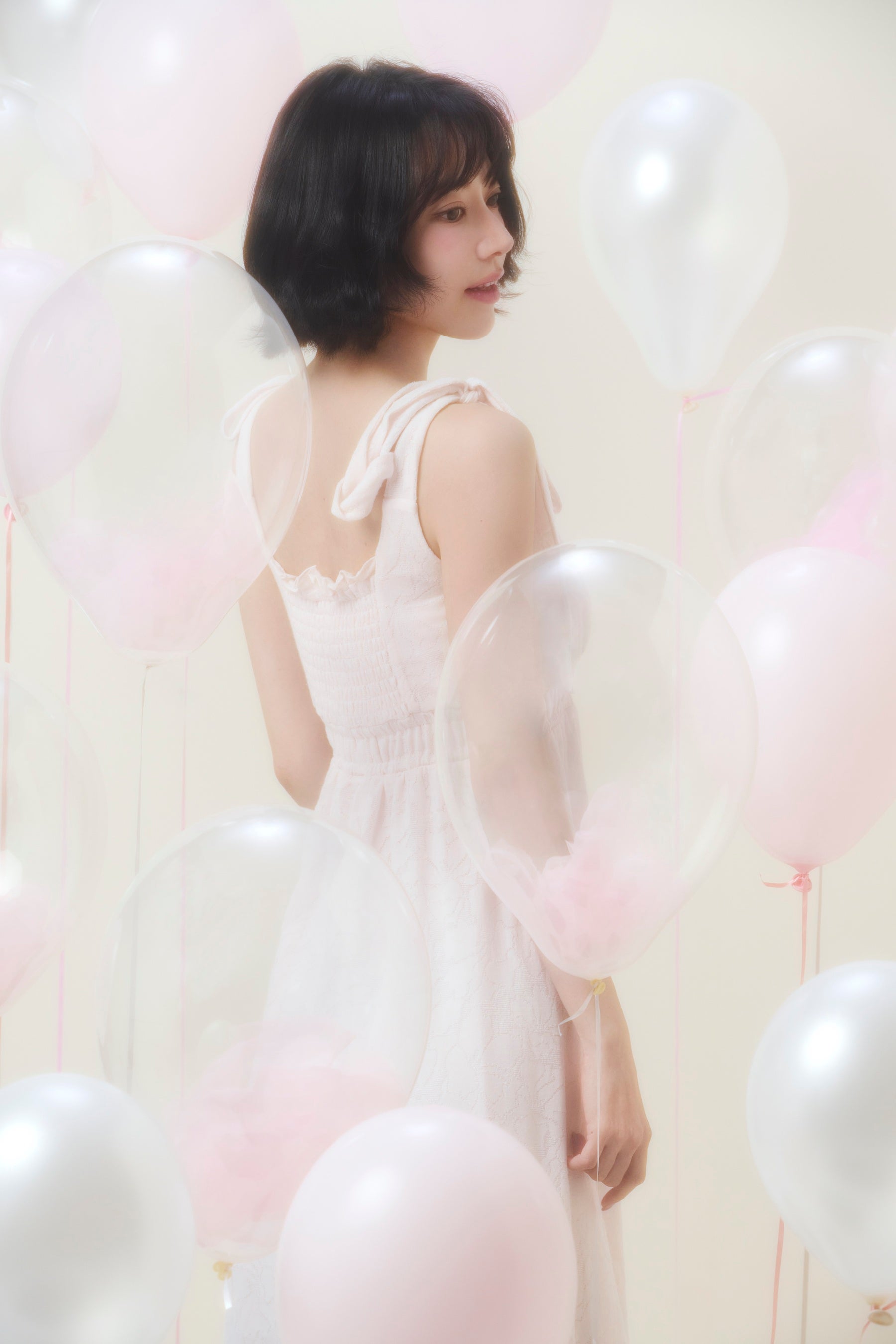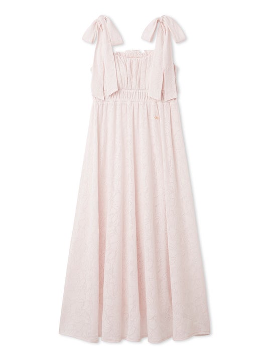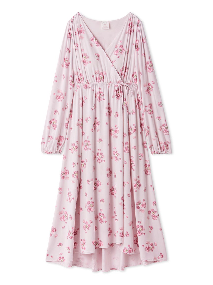 八重桜ならではの花弁の重なりや色のグラデーションまで丁寧に表現し、身に纏うだけで春の訪れを感じられるデザイン。ゆったりと過ごせるティアードデザインのキャミソールワンピースや、優美なヘムラインのカシュクールワンピースを展開し、気分に合わせてお楽しみいただけます。