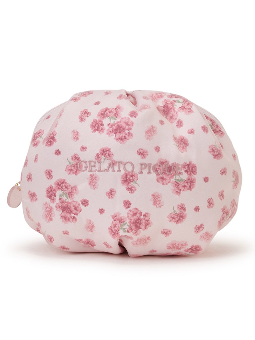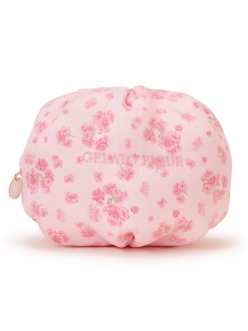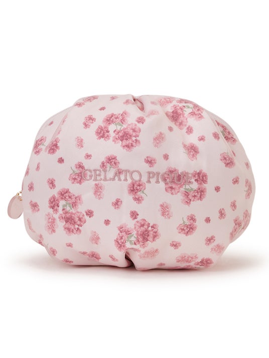 八重桜を散りばめた総柄ポーチは、小ぶりながら内ポケットがついており、デイリーに使いやすい仕様。繊細な色のグラデーションに心弾むアイテムです。